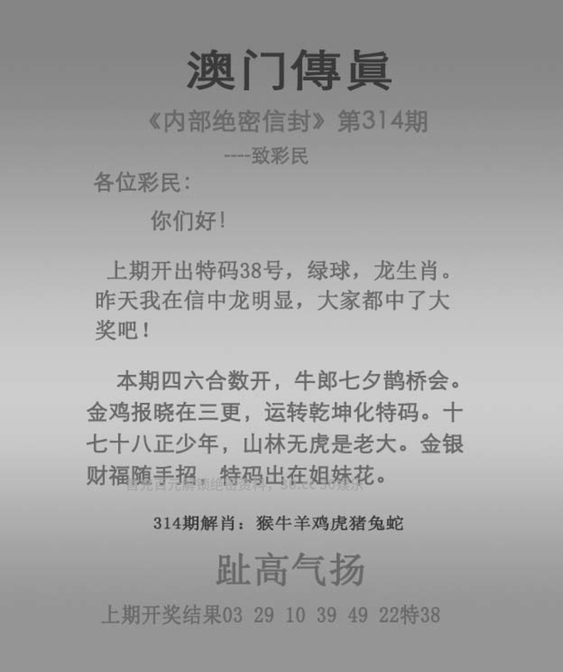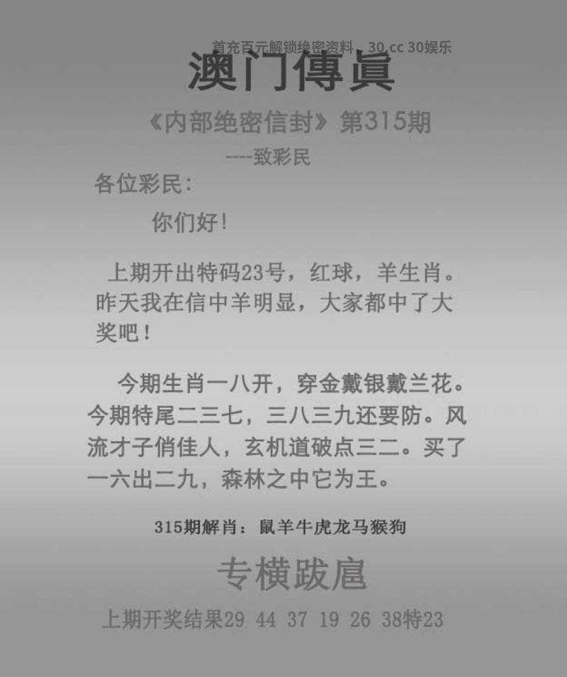 | 314期:开奖结果:29-44-37-19-26-38特:羊23准 | |||||||||||